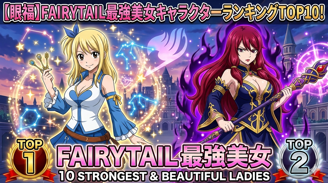 【愛と可愛さの絶対王者】 堂々の第1位は、やっぱり我らがルーシィ!人気投票1位も納得の、誰もを惹きつける明るい笑顔と抜群のスタイル。衣装が変わるたびに新しい可愛さを見せてくれる彼女こそ、FAIRY TAILを象徴する最強のヒロインです!